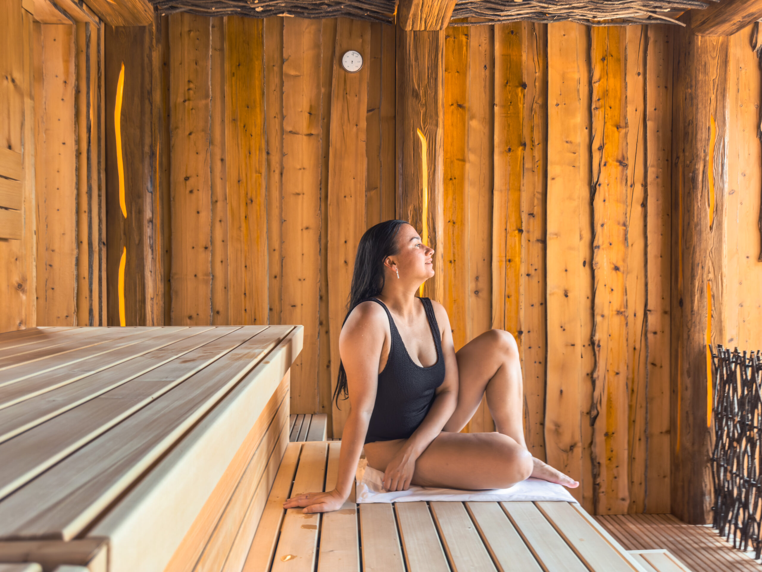 The sauna heats the body deeply, opening pores, elevating heart rate, and inducing profound muscle relaxation. The hot tub provides a transitional warm immersion that sustains the relaxation response and soothes muscles further. Together, they create a restorative experience that 20 minutes in either alone cannot match.