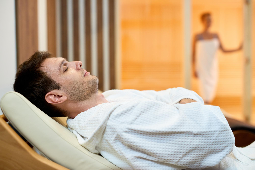 • Muscle relaxation: Physical tension held in the body — particularly in the back, shoulders, and neck — is a common cause of poor sleep. Sauna heat releases this tension, making it easier to settle into rest.