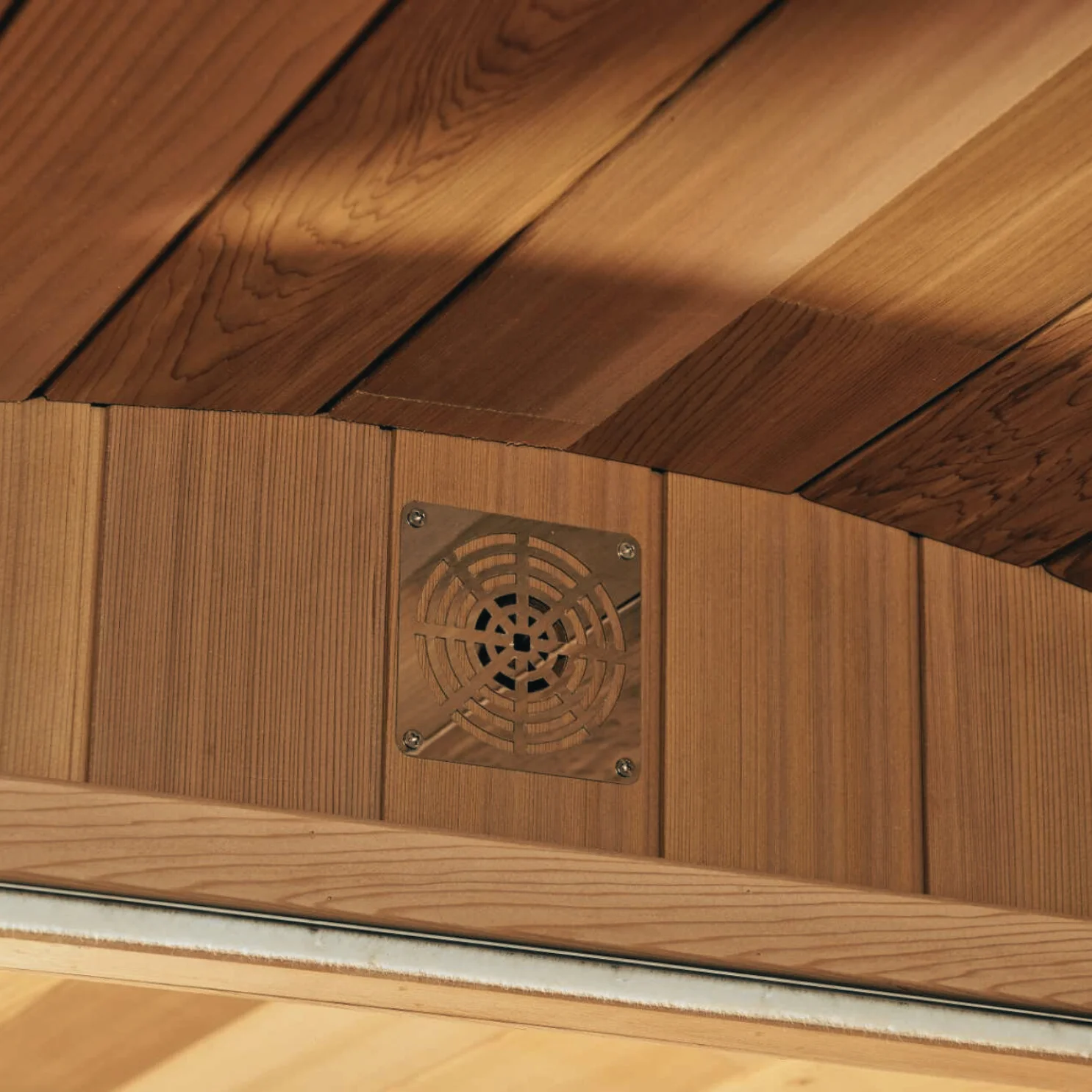 It is essential to have sufficient breathing air in the sauna. A good sauna must have 6-10 full air changes per hour. The venting holes are carefully designed to allow this to happen. They also help to circulate the air inside and prevent the build-up of excessive moisture. Our built-in venting holes not only make for a more comfortable sauna experience for you, but they can also help to extend the life of the barrel sauna by preventing mold and mildew from developing.