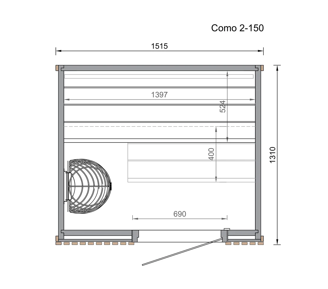The Como 2-150 features 40mm ThermoWood® wall elements engineered for durability and heat retention. Thermally modified timber resists humidity, swelling, and warping, making it ideal for long-term indoor use.