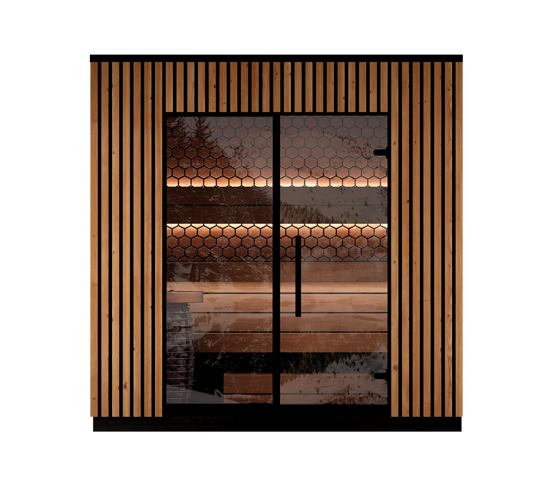 The interior layout provides additional width and depth, allowing relaxed seating and the option to recline during longer sauna sessions.