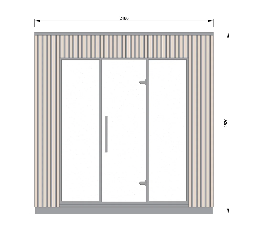 The Leil® Viva 250 is the largest model in the Viva Outdoor Series. Designed for four people, it features increased interior height and generous proportions, creating a lighter and more open sauna atmosphere.