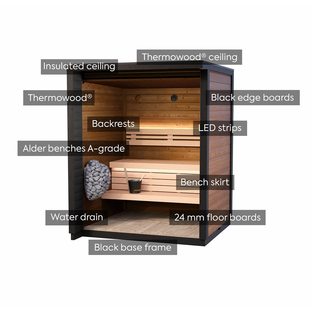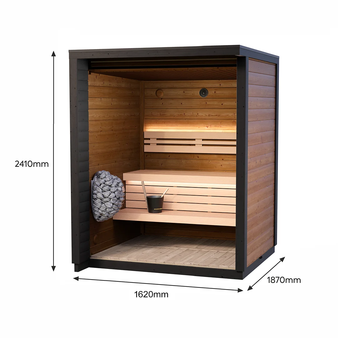 Transform your outdoor space into a sanctuary of relaxation with the Leil® PATIO 3XS (3-4 Person) Outdoor Sauna Termowood (3-4 Person). Experience the perfect blend of traditional Finnish sauna culture and modern luxury. Don’t wait—create the ultimate wellness retreat right in your own backyard today.