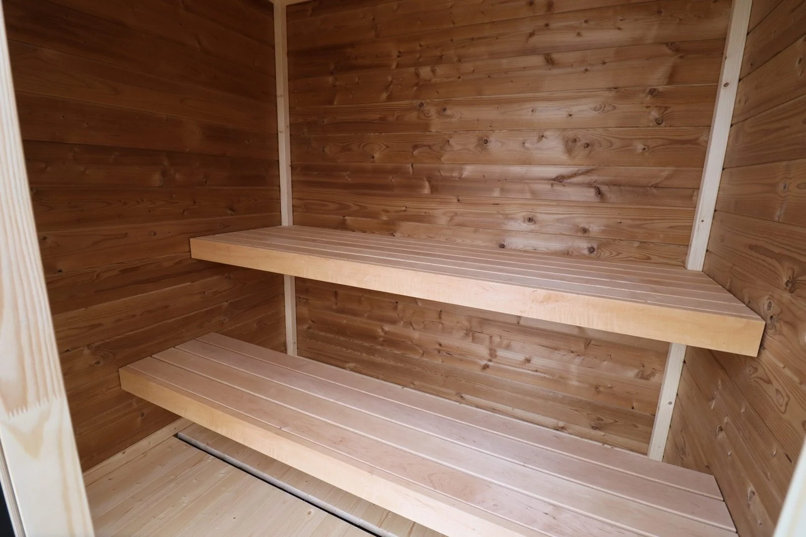 - The sauna’s split-level seating lets you experience varying heat intensities, tailored to your relaxation needs.