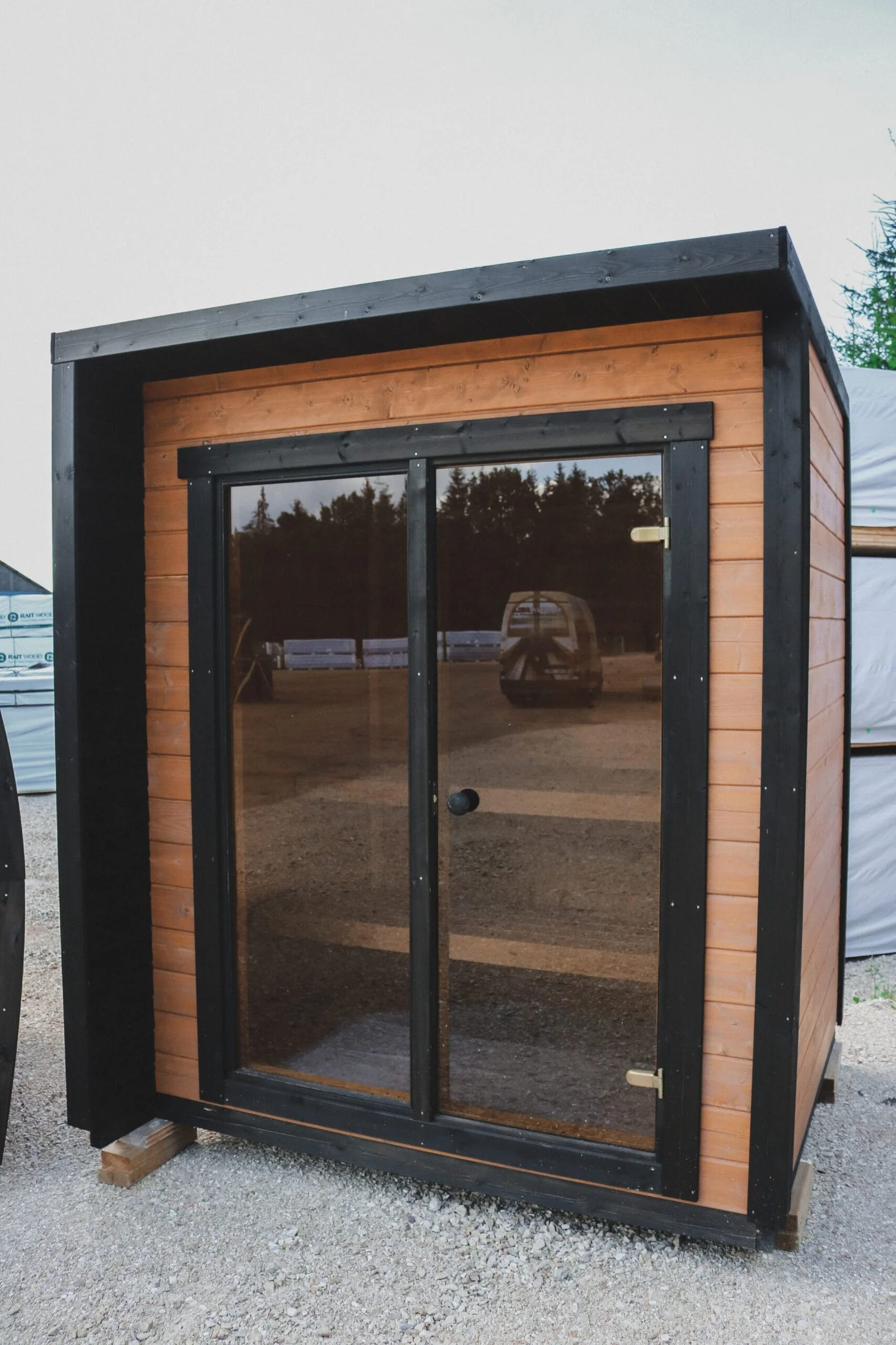 - Glass Features: The 8 mm tempered double-glazed windows and glass door add a sleek, modern aesthetic while retaining heat efficiently.