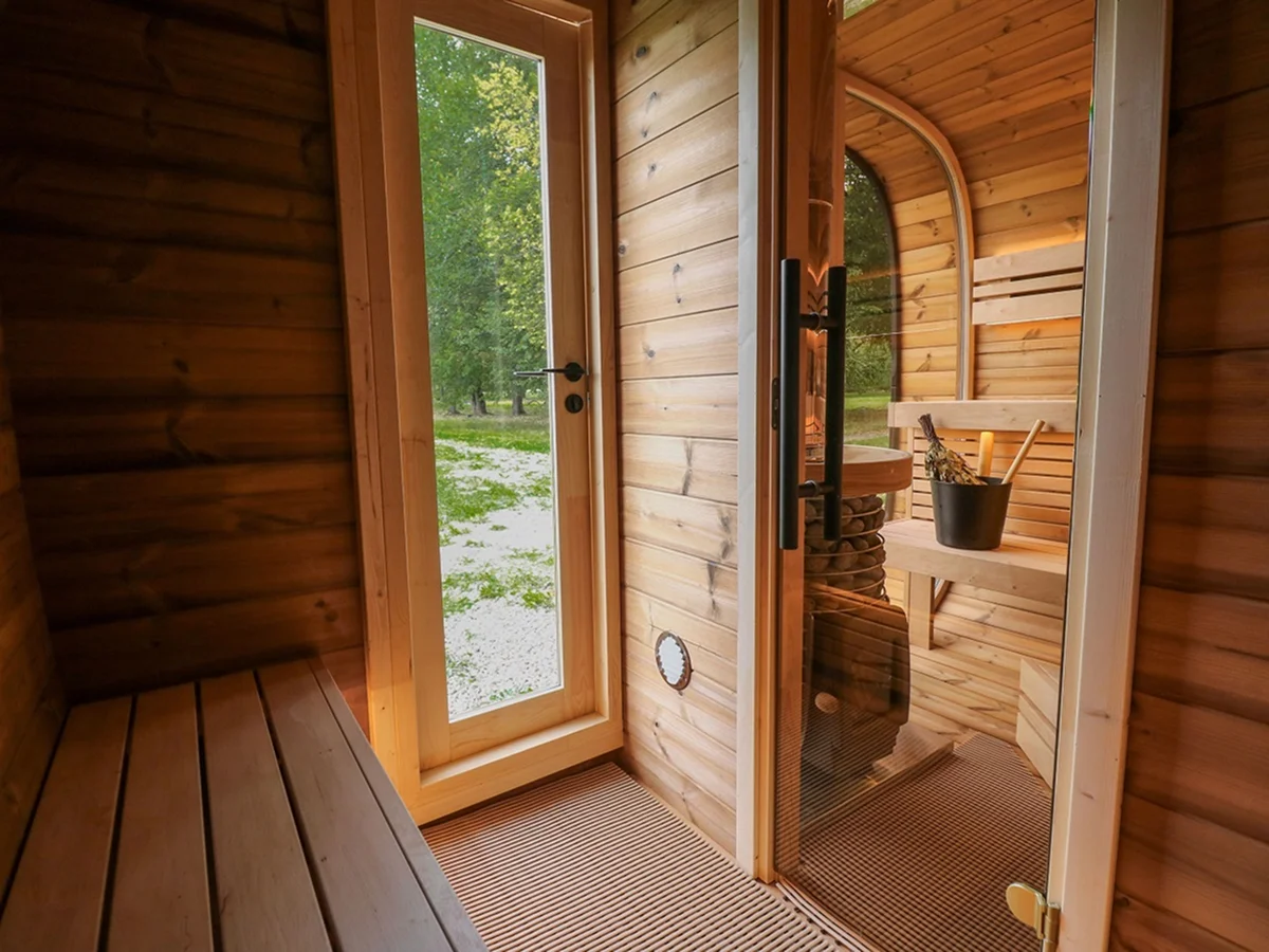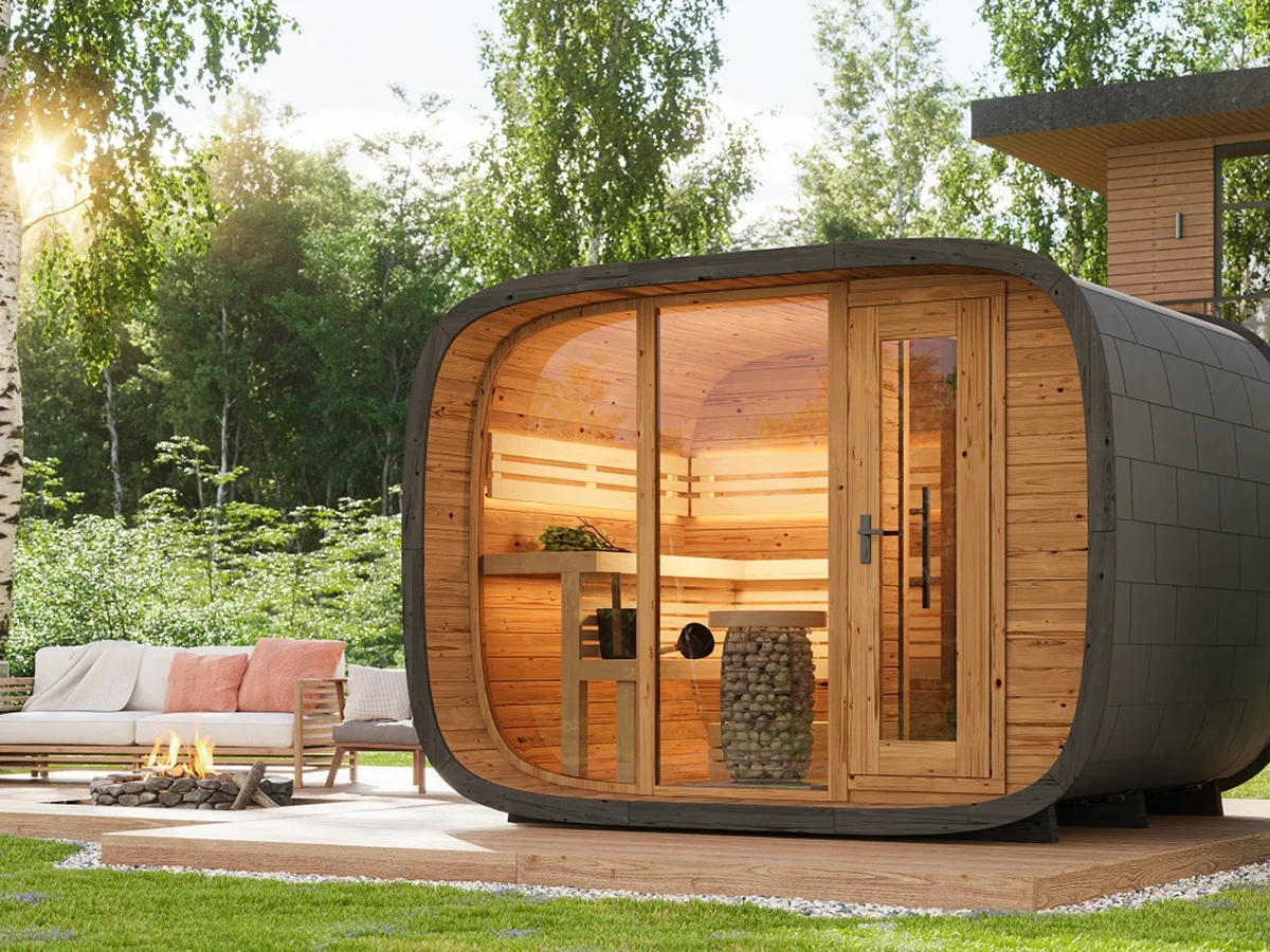 Leil® SERENITY ROUND CUBE DOUBLE (3 – 7 Person) MADE IN EUROPE Outdoor Sauna Termowood
