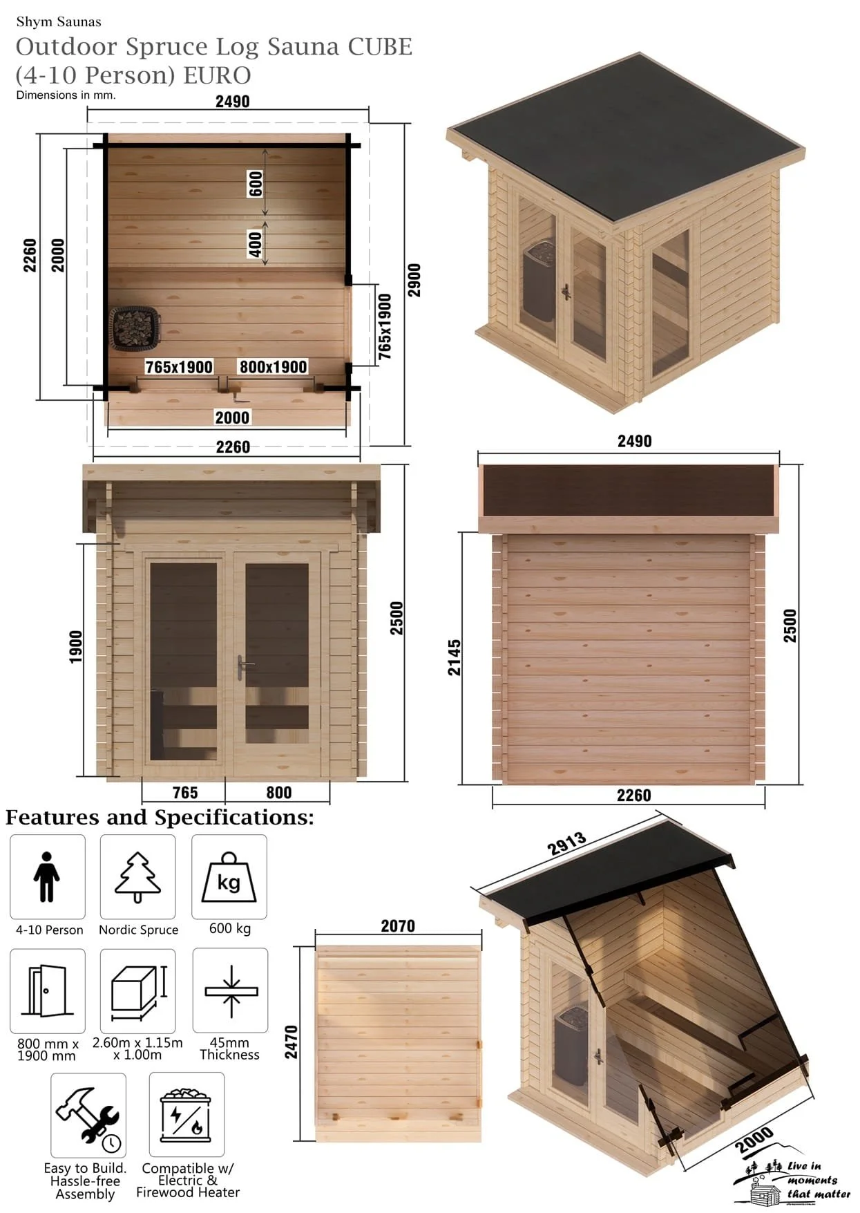 CUBE (4 – 10 Person) MADE IN EUROPE Outdoor Spruce Log Sauna