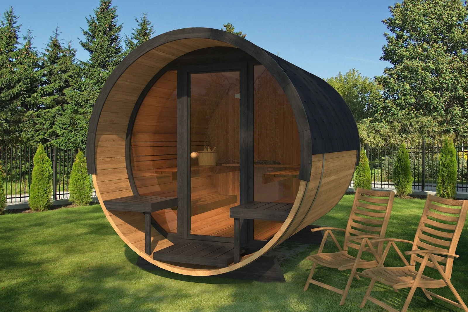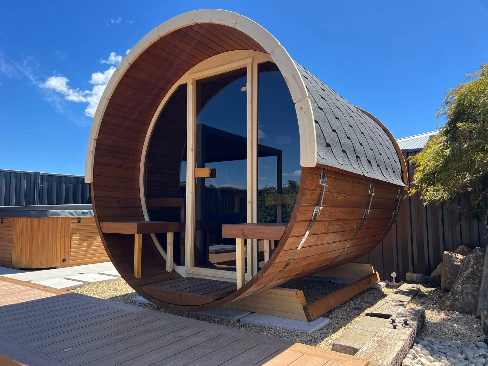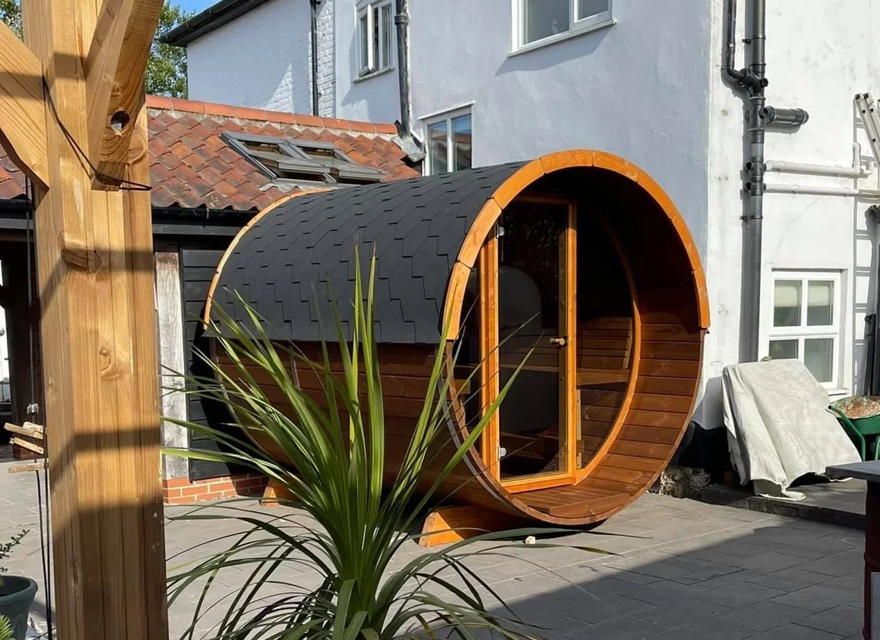 Round Barrel Saunas come with high-quality bitumen tiles, specifically designed for our saunas. These tiles are already included in the total cost of your purchase and cannot be modified or removed.