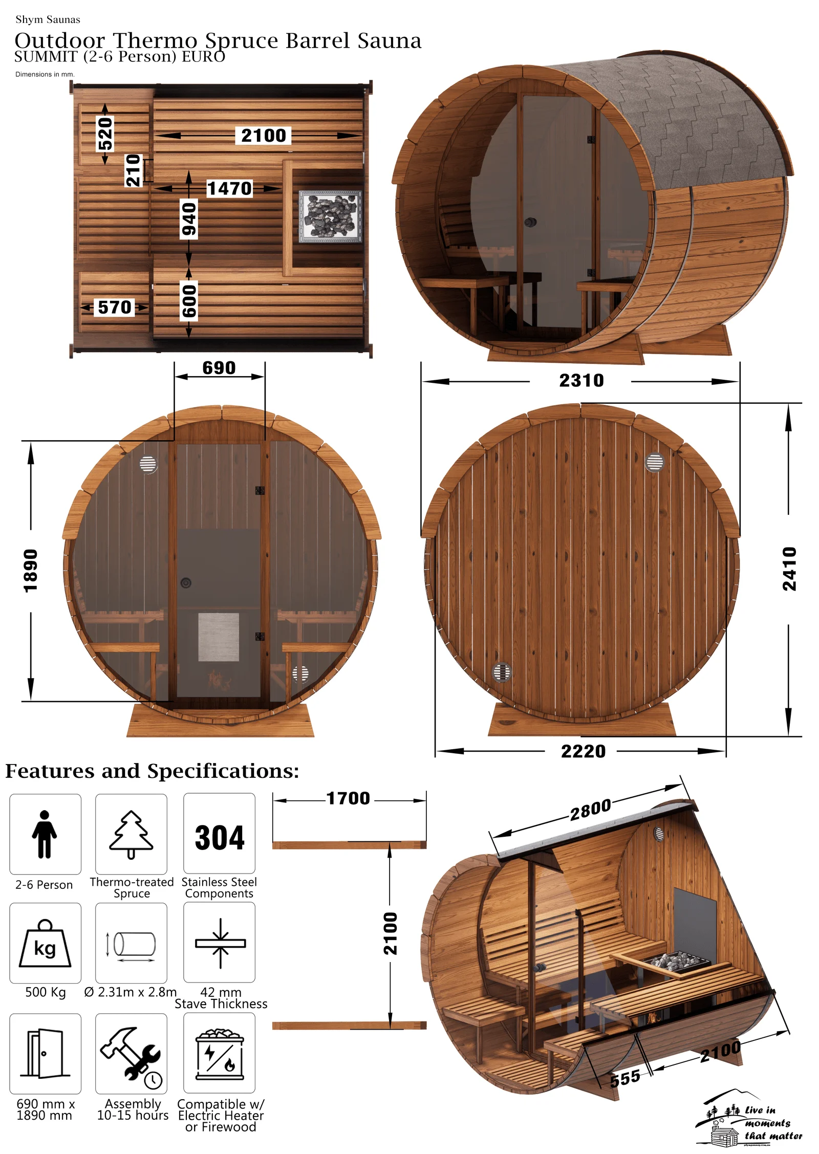 SUMMIT (4 – 6 Person) MADE IN EUROPE Outdoor Thermo Spruce Barrel Sauna