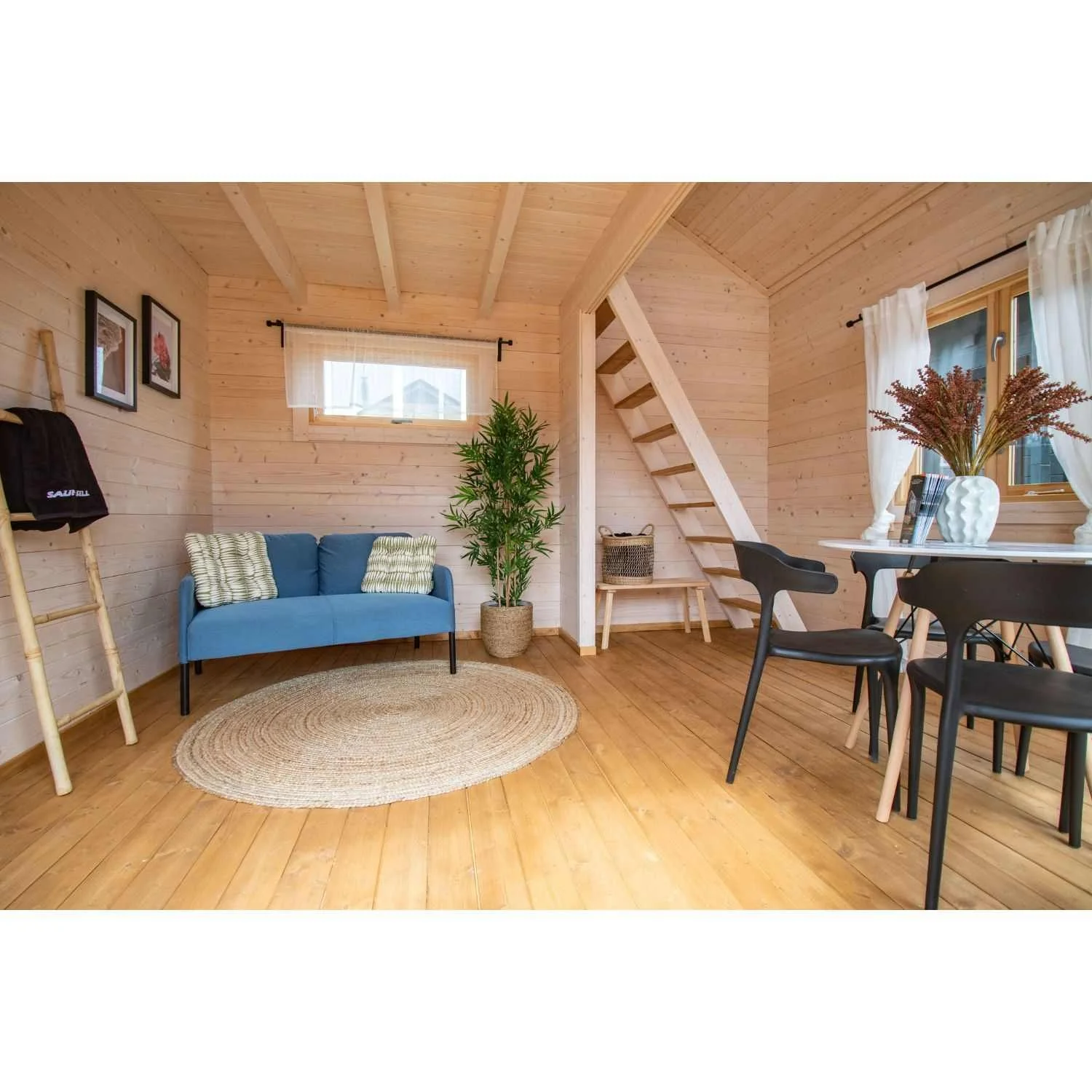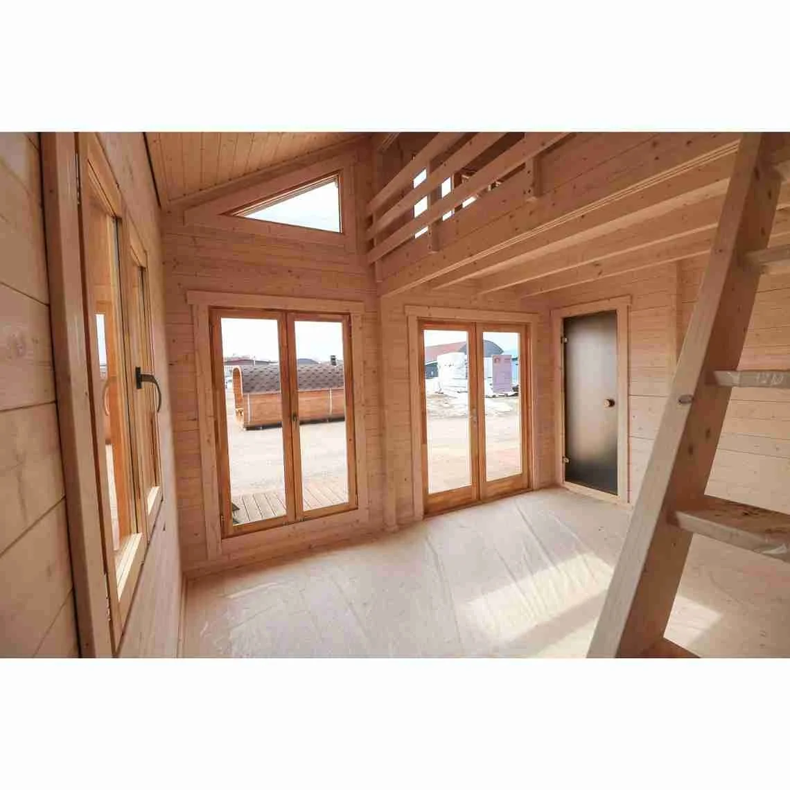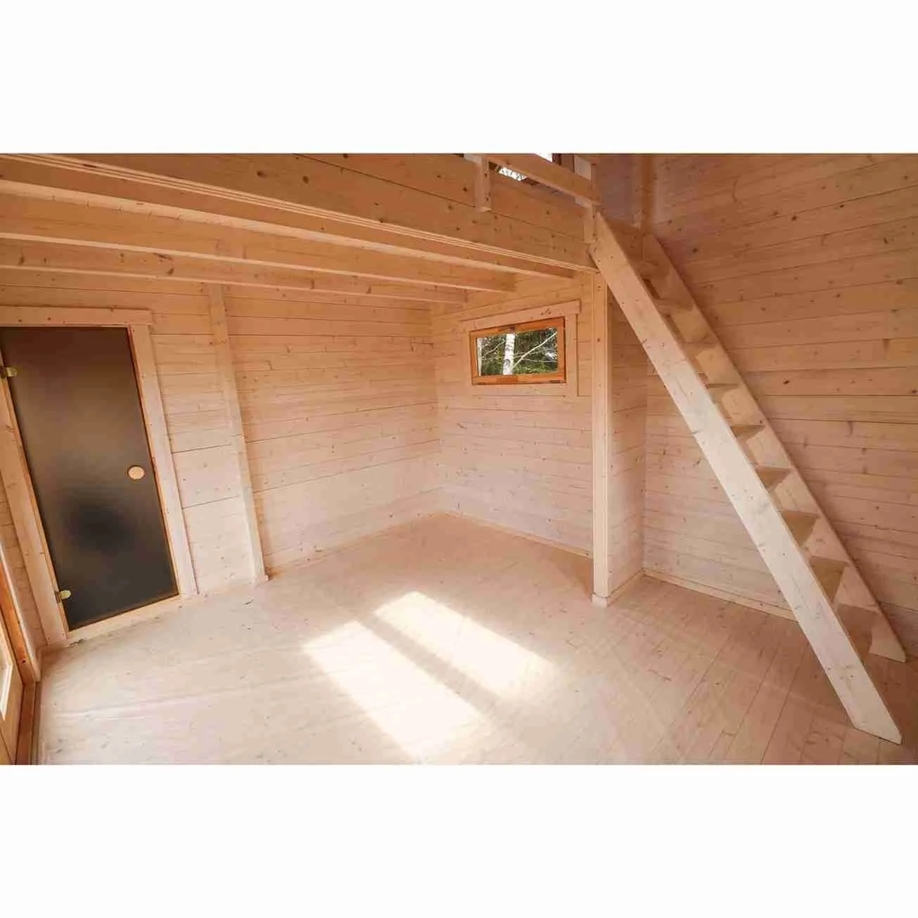 Sauna Cabin Fellin’s three-room layout allows for separate sauna, relaxation, and washroom areas, and the loft adds an extra dimension—use it for storage, an additional sleeping area, or a cozy hideaway.