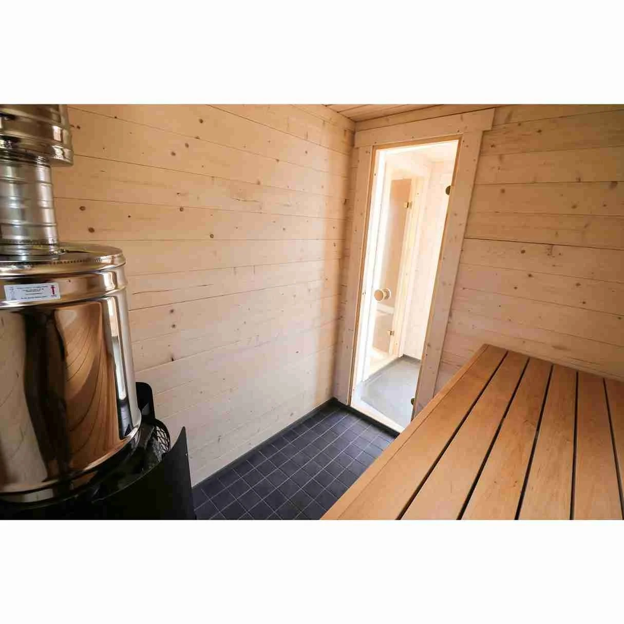 Metal Floor Gutter System – Prevents excess moisture in the sauna room.
