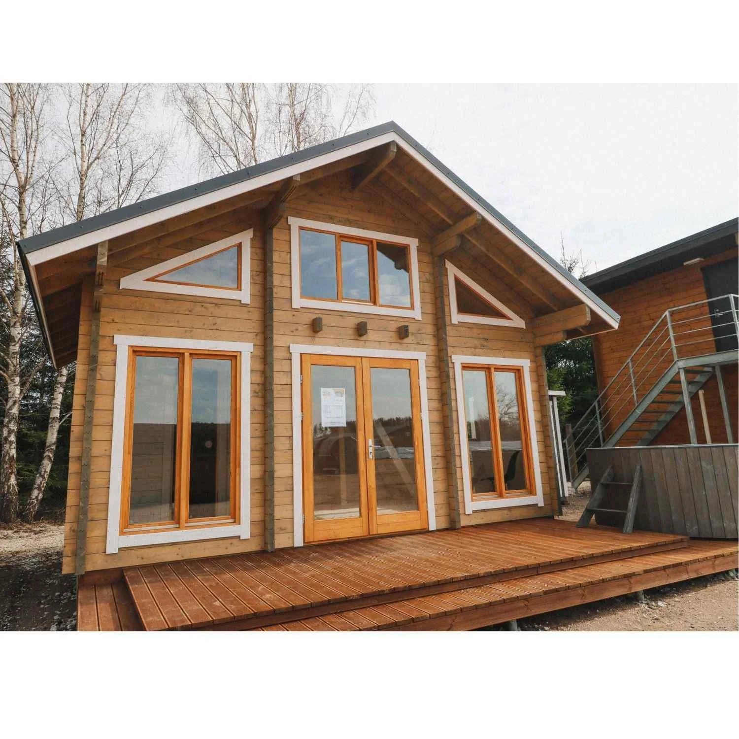 Enhance energy efficiency and style with premium PVC triple-glass windows and doors. These components elevate the cabin’s functionality and aesthetics.
