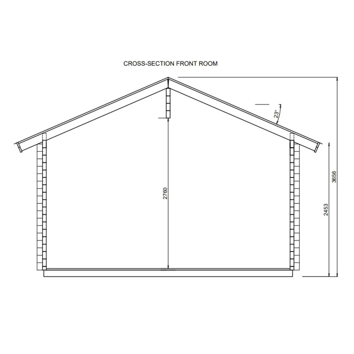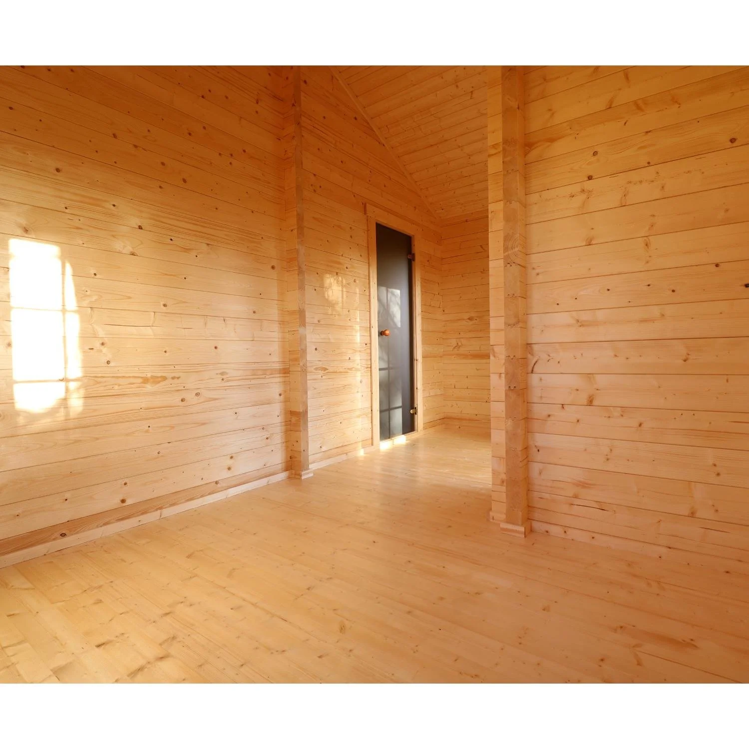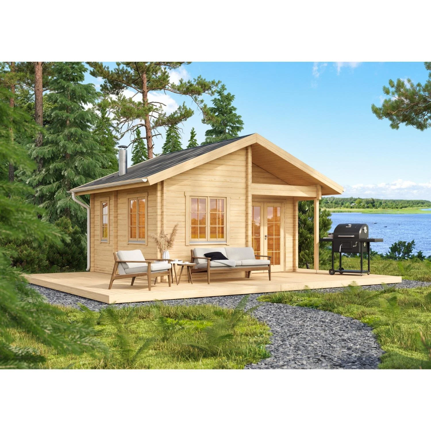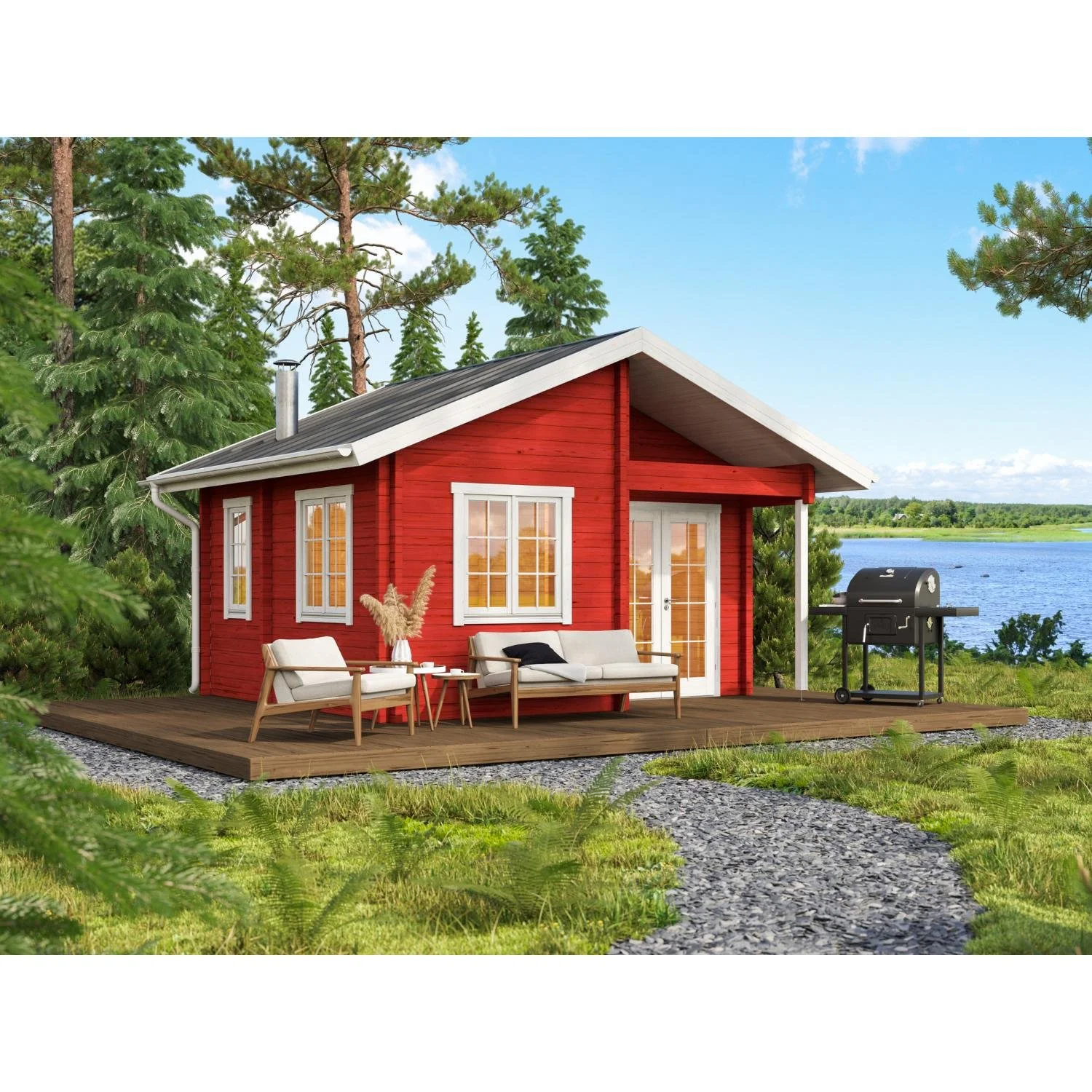 The Boden Sauna/Summer House masterfully blends quality and comfort, featuring 70mm laminated spruce walls and an insulated sauna room. This cabin boasts three functional rooms and a spacious terrace, complete with alder sauna benches, tempered double-glass windows, and a lockable wooden door for added privacy. An overhang roof with impregnated decking offers the perfect outdoor spot to cool off and relax. Designed for lasting durability and timeless appeal, the Boden Sauna House is your ideal retreat for wellness and leisure.