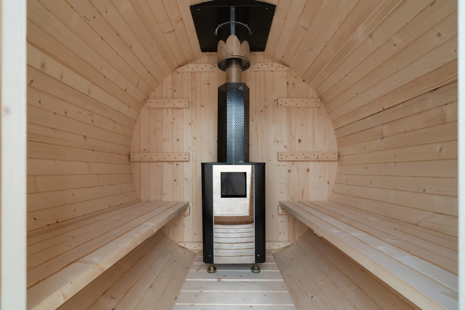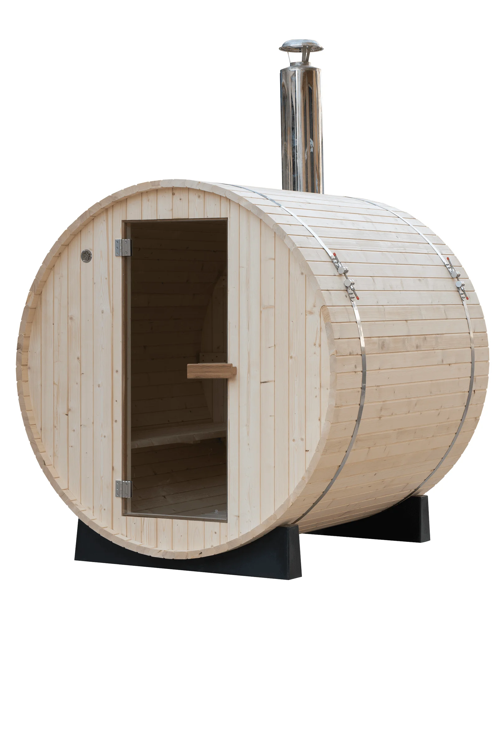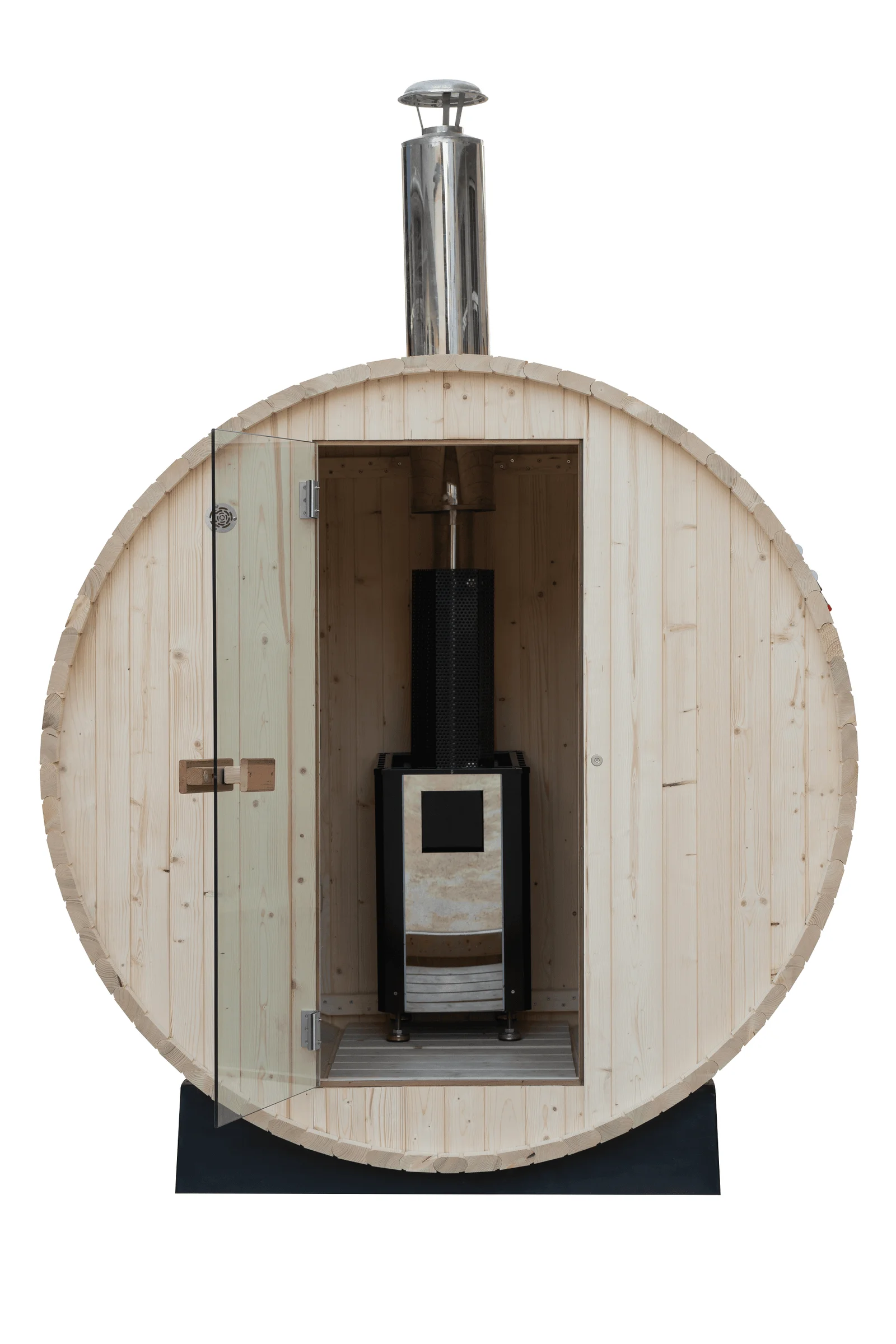 You can opt for an electric sauna heater or a traditional wood-fired one, either can be installed in our barrel sauna kits.