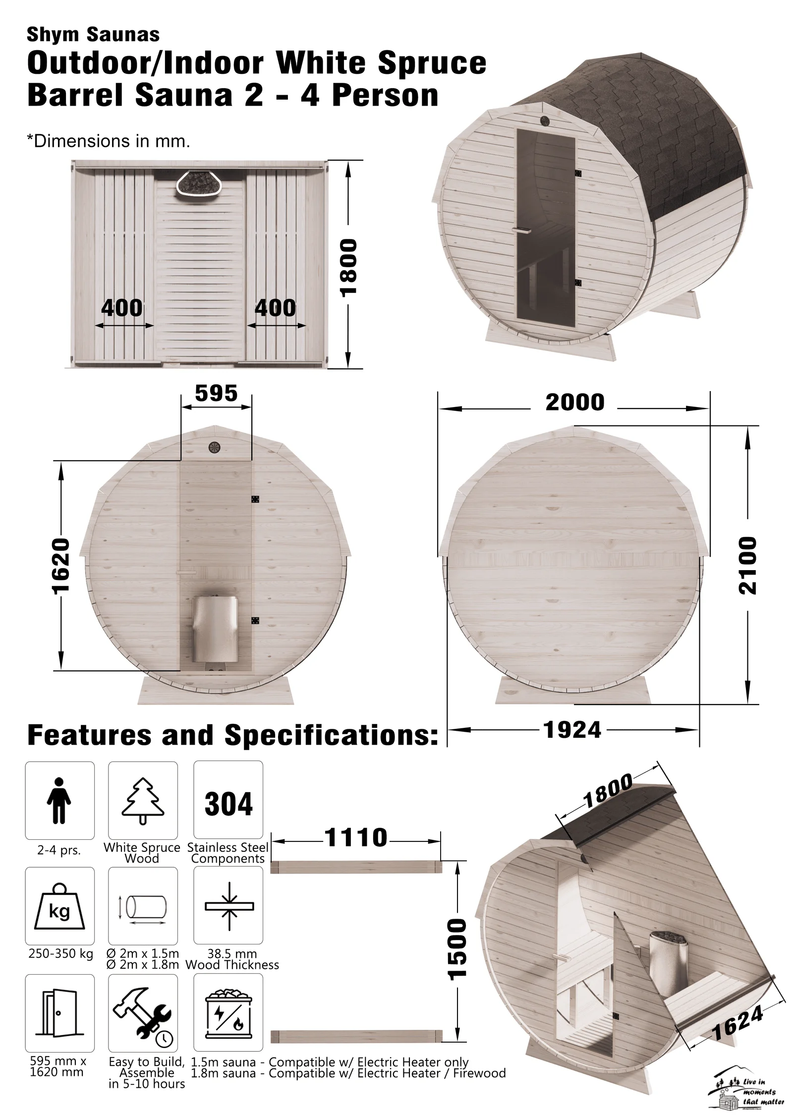The Outdoor/Indoor White Spruce Barrel Sauna from Shym Saunas is the perfect way to enjoy the benefits of a sauna in your own home. You can never go wrong with this if you seek the authentic sauna experience with its sleek and authentic design. This sauna can upgrade your outdoor setting, and of course provide you with health benefits that you love! It’s easy to assemble and comes with all the accessories you need.